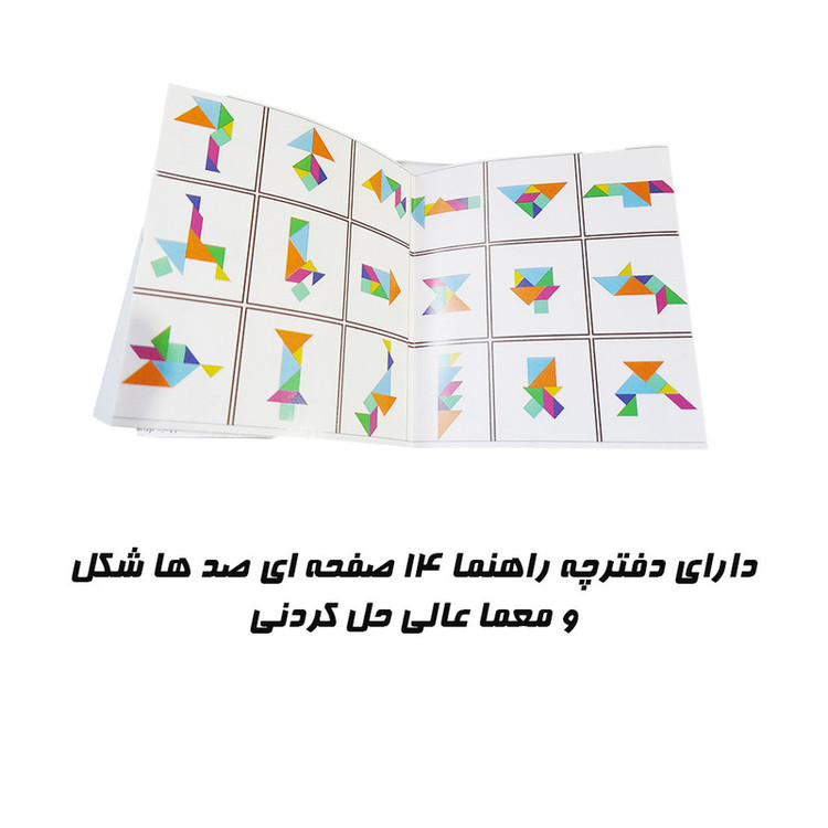 بازی معروف تانگرام ساختن اشکال مختلف با شکل های ساده است که بالا چند صد معما دارد که میتوان حل کرد و تخیل و قدرت حل مسئله کودک و سرعت دست خود را بالا ببرید . جنس این بازی چوبی است و رنگ های متنوع دارد و دارای دفترچه معما و جعبه چوبی میباشد .