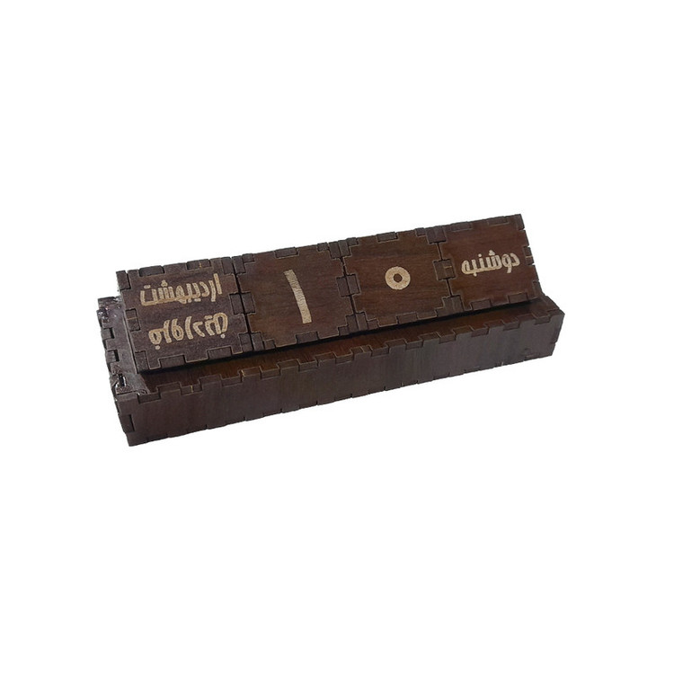 تقویم مکعبی چوبی ساخته شده از چوب ام دی اف دارای روز و ایام هفته و ماه است . این تقویم دائمی بوده و میتوان برای همیشه استفاده کرد . با جابه جایی مکعب ها به راحتی تاریخ را جابه جاکنید .