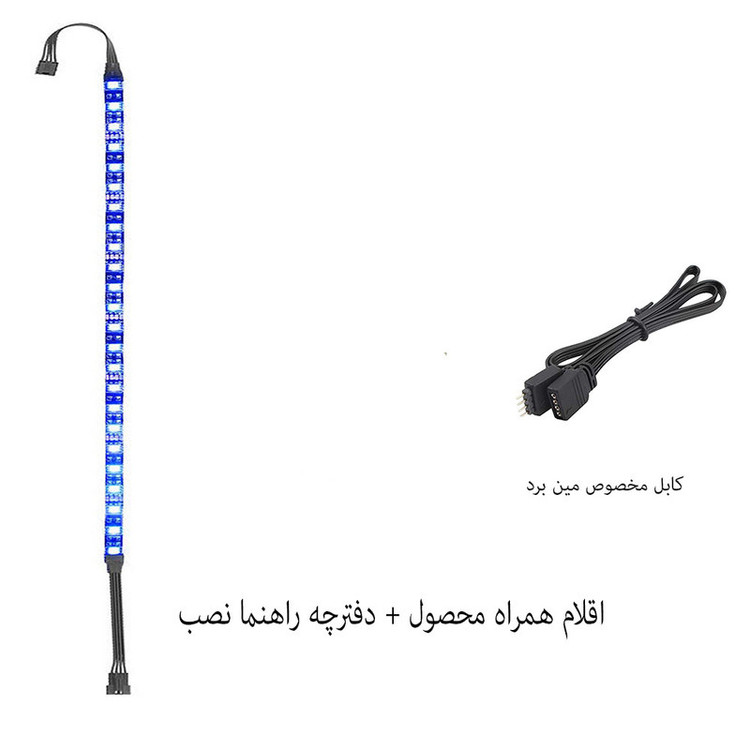 نوار ال ای دی آر جی بی مناسب کیس های دارای سوکت مخصوص نور پردازی RGB که با استفاده با نرم افزار مخصوص مین کنترل می شود .طول نوار تقریبا 35 سانتی متر و دارای کابل مخصوص و قابلیت سری کردن چند نوار با هم را دارد . دارای سه مگنت جهت سهولت در چسباندن در کیس