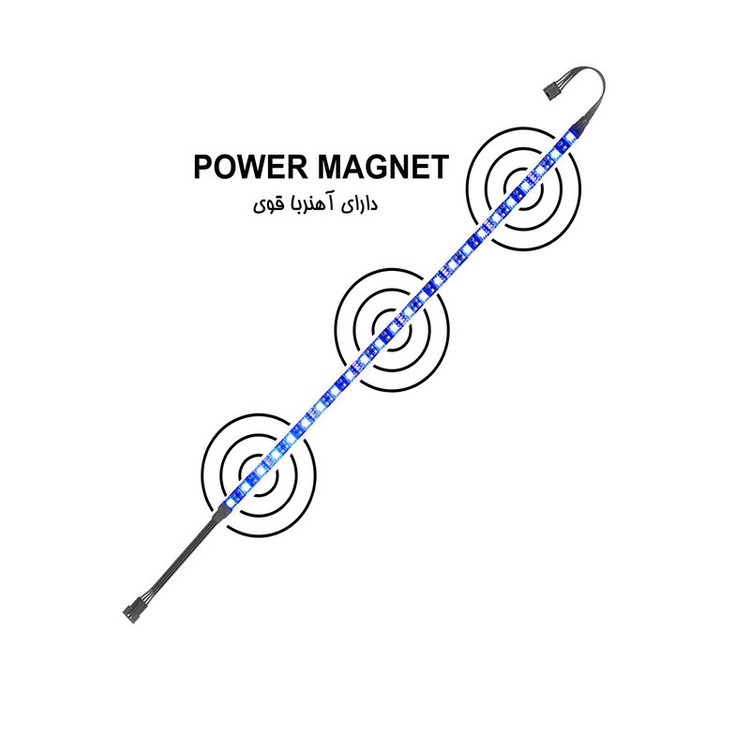بسیاری از کیسهای حرفهای کامپیوتر دارای نور پردازی LED هستند ولی همچنان کیسهایی وجود دارند که از نورپردازی بهره نمیبرند و تنها به کمک پنجرهی شیشهای که در قسمت کناری آنها تعبیه شده میتوان چرخیدن فن را مشاهده کرد و زیبایی زیادی نخواهد داشت. این محصول یک کیت نورپردازی برای زیباتر کردن محیط داخل کیس است. این محصول که مانند یک نوار طراحی شده در قسمت پشتی دارای آهنربا میباشد. که با ان میتوان در کیس چسباند . این محصول دارای انعطاف مناسبی است که این موضوع باعث شده بهراحتی بتوان از آن برای قسمتهای مختلف کیس استفاده کرد.این محصول به دلیل استفاده از آهنربا قوی در پشت آن به راحتی به هر نقطه از کیس نصب می شود و راحت می توان جابه جا نمود . رنگ LEDهای این محصول فول کالر بوده و به راحتی از طریق نرم افزار تغییر پیدا میکند و حالت تغییر رنگ و رقص نور داراست . این محصول دارای کابل همراه می باشد که به شما اجازه می دهد چند تا از آن ها را به هم متصل کنید . توجه بفرمایید این محصول فقط مناسب مادر برد هایی است که دارای درگاه RGB می باشند و باید مادربرد شما این درگاه را داشته باشد و از فناوری RGB پشتیبانی کند . باید نرم افزار مربوط به مادربورد خود را بسته به نوع آن نصب کنید .