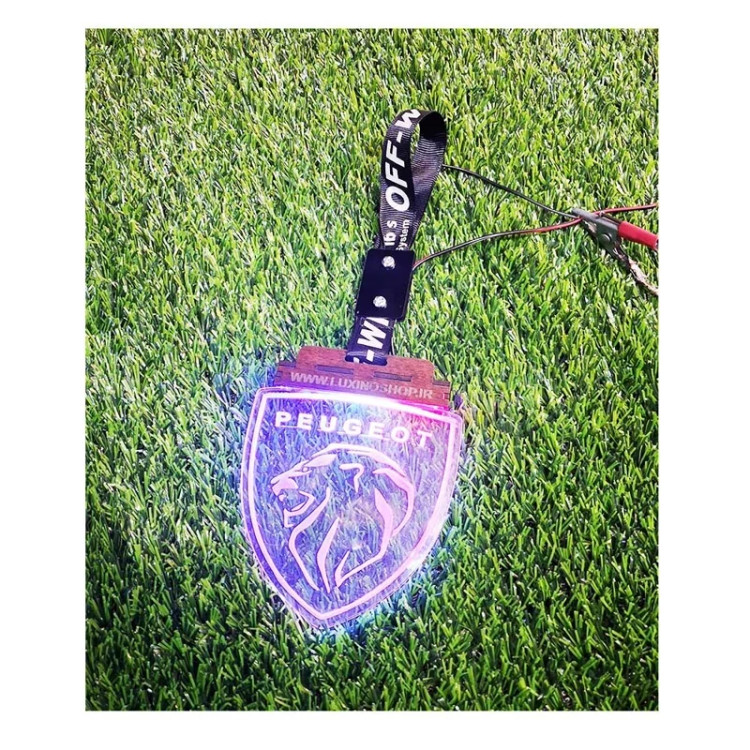 آویز آینه خودرو چراغ دار ال ای دی طرح آرم پژو