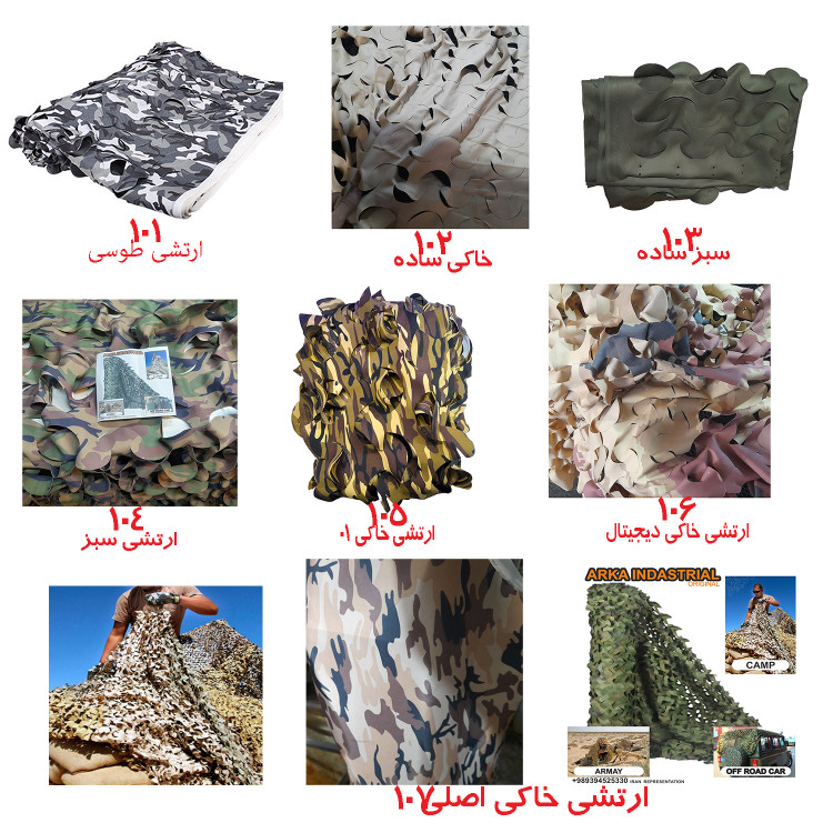 تور استتار ابعاد حدود ۲ متر در ۱.۵ متر دارای سوراخ های دور تور جهت بستن با نخ یا کش به هم و یا بستن در هر جای دلخواه است . جنس پارچه عالی